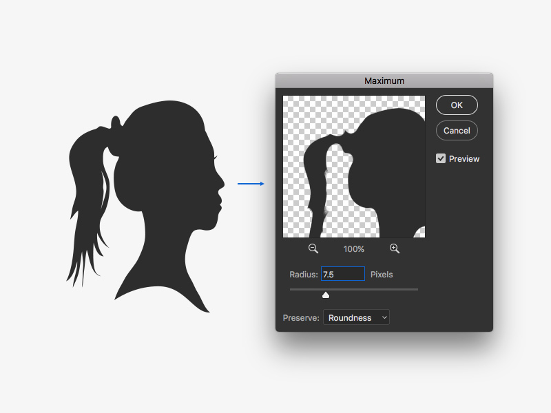 This is useful when you have an object which needs to be just slightly bigger or smaller. A good example is if for creating a displaced shadow, you can duplicate your object and on the bottom copy apply Maximum.. to make the object smaller/appear distant, then add a Gaussian Blur and black Color Overlay to create a shadow.