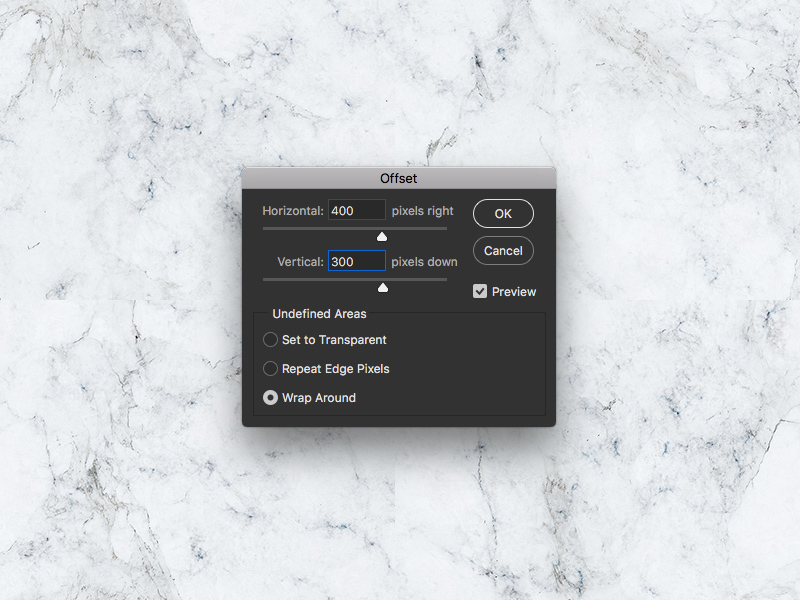 The number one use for this filter has got to be making seamless patterns. If you take a regular texture in Photoshop and offset the pixels by 50% vertically and horizontally, you will be able to see the 'seams' where the texture repeats in the middle. Smooth over these seams and your texture can now be repeated seamlessly. Click here to read our tutorial on how to create a seamless texture using Offset.